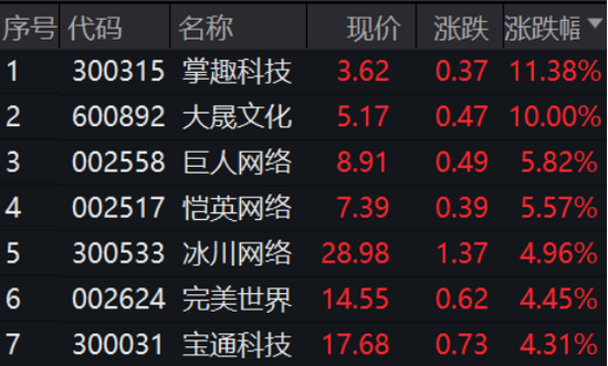 新一轮国产游戏版号发布,A股游戏板块大涨,掌趣科技涨逾10%,大晟文化涨停,巨人网络、完美世界等涨逾4%。港股网易涨近6%,腾讯早盘一度涨逾3%。