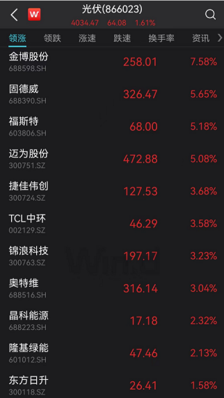 光伏板块早盘回暖,固德威涨逾5%,TCL中环、“光伏茅”隆基绿能、晶科能源等跟涨。
