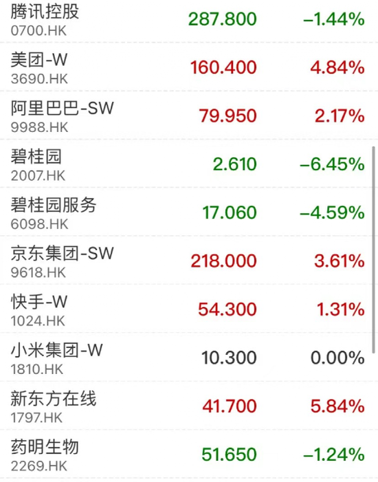 盘面上,政策利好袭来,教育股全天上扬,希望教育、宇华教育、中教控股等多股涨超10%。科技股多数上涨,美团涨近5%,盘中一度涨超9%;网易涨近4%,阿里巴巴绩后涨超2%,但腾讯冲高回落收跌超1%。