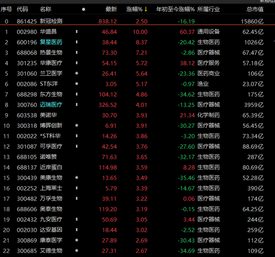 新冠药物、检测概念领涨,华盛昌、中国医药涨停,复星医药、君实生物-U涨幅超过8%。