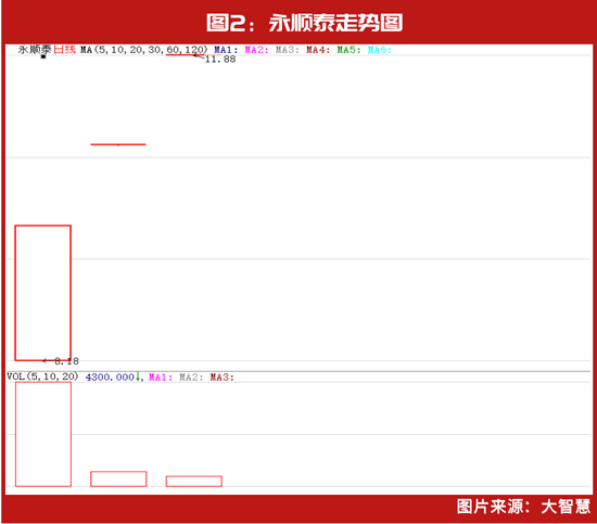相较曾经新股不败的神话,今年以来,新股开始频繁破发,但统计月内林园参与打新的15家公司,目前只有天山电子、天元宠物两家公司跌破了发行价。除了有研硅最新收盘价较发行价格上涨74.27%外,啤酒股永顺泰的表现也十分优异,自11月16日登陆深市主板以来,股价已连续3天收于涨停(见图2)。