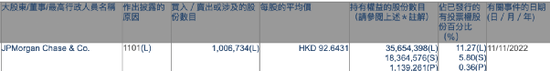 此外,中国财险也于11月11日获摩根大通以每股均价7.61港元增持1511.41万股,涉及资金约1.15亿港元。增持后,摩根大通最新持多仓数目为4.16亿股,持多仓比例由5.81%上升至6.03%。