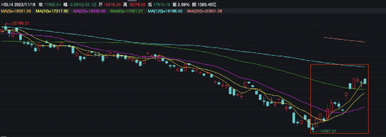 自10月31日恒生指数创下历史新低14597.31点后,今年来连续下跌的港股市场迎来反弹行情,11月18日恒生指数报收17992.5点,11月以来恒生指数涨幅已超23%。