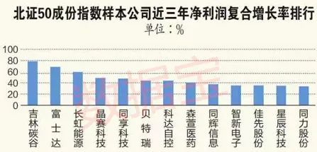 具体看,诺思兰德和吉林碳谷两家公司近三年营收复合增长率均超过70%。诺思兰德2018年总营收为1029万元,去年营收5686万元,复合增长率接近77%。吉林碳谷、富士达、长虹能源等公司近三年净利复合增长率均超过50%,高居前三位。吉林碳谷2018年亏损8343万元,2021年大赚3.15亿元,三年复合增长率超过79%,居首。