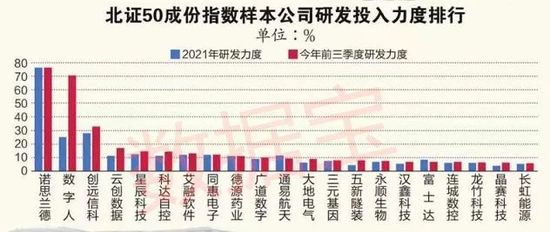 诺思兰德今年前三季度研发投入力度超76%。公司是一家创新型生物制药企业,专业从事基因治疗药物、重组蛋白质类药物和眼科用药的研发、生产与销售。数字人研发力度位居次席,今年前三季度研发投入力度超70%,公司专注于数字医学领域的软件开发。