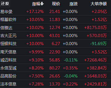 信创板块午后资金回流,榕基软件、信雅达、南天信息等多股涨停。