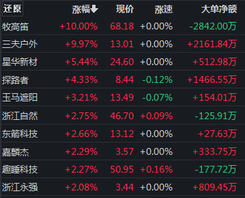 露营经济板块异动拉升,三夫户外、牧高笛双双涨停,星华新材、探路者、嘉麟杰等跟涨。