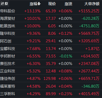 以HJT电池、钠离子电池等新技术为首的赛道股全天活跃,海源复材、乾景园林、维科技术涨停,帝科股份、传艺科技、宝馨科技等纷纷大涨。