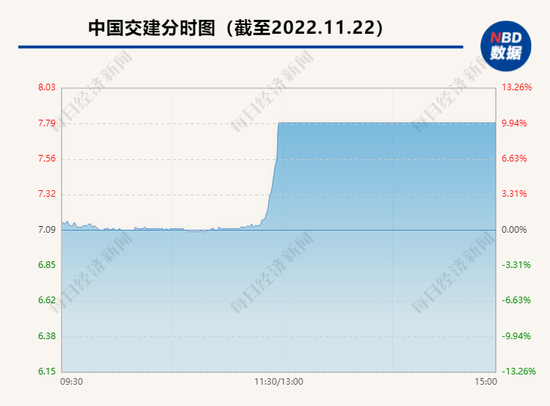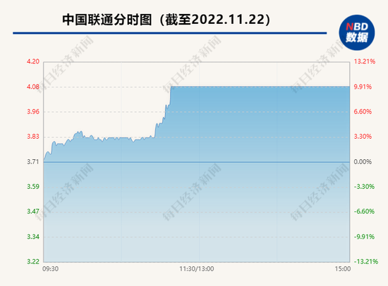 截至收盘,中字头股票已有中铁装配、中国中冶等10股涨停。中国联通大涨9.97%,报4.08元/股;中成股份大涨10.01%,报11.98元/股;中国交建大涨10.01%,报7.80元/股。