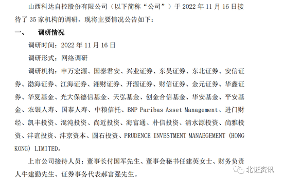 值得注意的是,外资机构也已经悄悄展开布局,在11月的调研榜单中身影频现。例如,11月16日造访科达自控的外资机构就有BNP Paribas Asset Management(法国巴黎资产管理有限公司)、PRUDENCE INVESTMENT MANAEGEMENT (HONGKONG) LIMITED。BNP Paribas Asset Management同时在11月15日参与调研天马新材。JMCapital 君茂资本则在11月17日参与了森萱医药的网络调研。在鹿得医疗今天公告的调研机构榜单中,出现了淡马锡富敦投资有限公司的身影。HD CAPITAL LIMITED、Dymon Asia则分别对中纺标和诺思兰德进行调研。