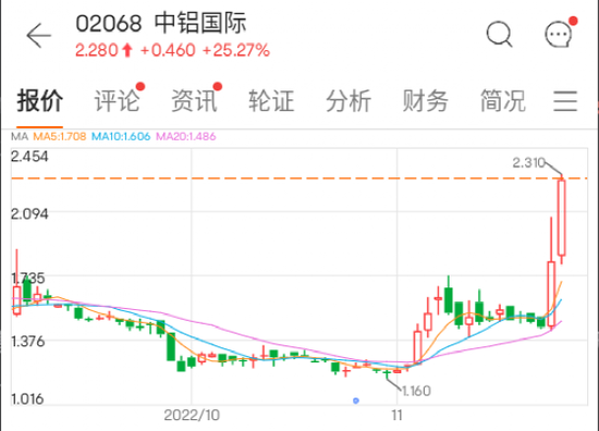 港股300余中字头个股中,反应最明显的是资源股、能源股及航运股,成为拉升中字头估值的第一天团。其中领头羊为中铝国际,A股涨停,港股直接飙高25%,两个交易日拉升57%。