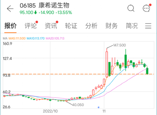 部分地区启动吸入式疫苗加强后,康希诺生物股价一度单日飙6成。但公司主动公告吸入式疫苗不会带来大幅业绩增长后,炒作资金大幅受挫。近期随着防控政策的优化,市场对于疫苗补强概念又有的新的认识。