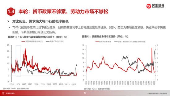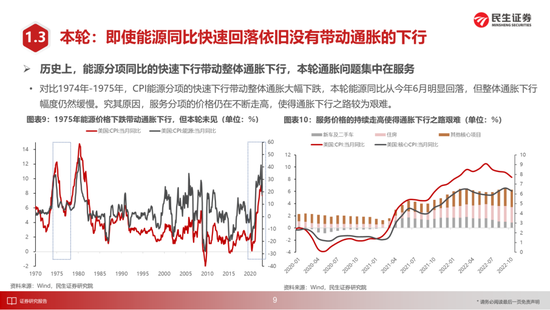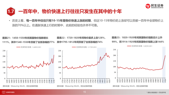 在2022年全球通胀从读数上开始呈现了回落的迹象,这类似于1973-1974年后的供应冲击后的通胀回落。不幸的是,即使1974年后欧佩克开始重新恢复石油供应,然而大宗商品的价格上行中枢却被固化了下来,在随后的通胀二次上行之际,美元不再强势,通胀的长期问题开始被真正认知。本轮全球最大的经济体为打压通胀,压低了全球的大宗商品库存和回收了大量美元流动性。即便如此在大宗商品今年以来的回调中,更多的是金融属性的下跌,实物属性却相对平稳。采用当期见效最快的方式打压通胀无可厚非,这与历史上一样,但是代价却是大宗商品的产能投资并未看到明显增加,解决通胀长期的办法应该是增加生产,因此积蓄的势能不是被解决了,而是被短期掩盖。如果看15世纪以来的物价趋势,往往都是在10年左右时间贡献大部分的物价上行,随后进入漫长的物价平稳期。过去10年供需平衡的范式可能并不能解决当下的问题,投资者对未来要保持足够敬畏。当下美国以实际利率为代表的债券市场反映了对于通胀中枢上移的忽视,如果大宗商品供应最终不能解决,那么CPI可能在明年中左右再度上行,通胀将真正转换为长期问题。