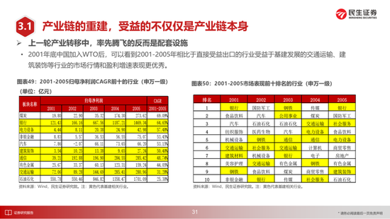尽管发展制造业无疑是自上而下的共识,这反映到过去一段时间投资组合中的共识中,特别是对于高端制造。其实对于投资者而言,最优的策略并不是直接投资重点发展的领域本身,特别是在人潮拥挤之处。我们对于最终的需求来源不可测,但是却对短板之处非常清楚:在中下游产能利用率不断下滑之时,上游产能利用率却仍然处于高位。在新型电力系统建设中,电力从容量和电荷上的错配越来越严重,这一点并不能简单通过新型电源的建设进行弥补,解决时空错配的能力变得越发关键。上述原因让制造业供应侧更加脆弱,中国的通胀似乎只缺一点需求的火焰。相反,高端制造业在经历了大量的资本开支和新进“搅局者” 后,未来将迎来2016年以来在TMT中出现的产业资本与一级市场“向二级市场要收益“的困局。视野拉回到2001-2005年,尽管产业链向中国的转移如火如荼,但是转移的行业并没有为之进行城镇化和工业化提供原材料和配套设施的行业亮眼。从这个意义上,过去提供廉价的公共服务的国有企业确实有重估的必要,不是国企的时代,但却应该拥抱时代的国企。