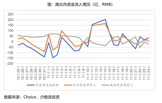 美国10月CPI增速回落程度全面好于市场预期,核心商品、医疗服务价格下降,通胀拐点已现,美元加息节奏放缓,美元指数随之回落,人民币汇率贬值趋势基本结束,中美经济明年初大概率出现中国向上,美国向下的周期错位。外资流出的担忧也明显改善,北向资金集中多日净流入。