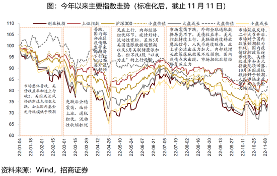 七月份至十月中二十大召开,外部全球通胀数据居高不下,美联储连续鹰派加息,人民币汇率加速下跌,北上资金流出压力加大,内部稳增长政策落地效果不及预期,市场担忧后续经济复苏乏力,叠加外需预期走弱,市场再次震荡走低。