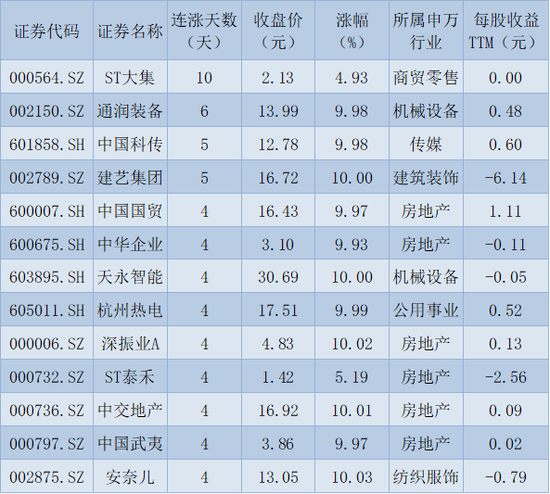 表:连续上涨4天且今日收盘涨停股一览