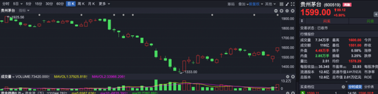 再看今天市场另一件大事,贵州茅台今天大涨5.9%,股价逼近1600元,市值重返2万亿。当然,今天贵州茅台的大涨,也有其自身原因影响。昨晚,茅台放了一个大招:公司拟在2022年度内以实施权益分派股权登记日公司总股本为基数实施回报股东特别分红,具体为——拟向全体股东每股派发现金红利21.91元(含税)。截至2022年9月30日,贵州茅台总股本约12.56亿股,以此计算合计拟派发现金红利275.23亿元(含税)。