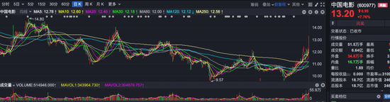 而今天来看,除了上述几个板块外,就连电影板块也开始异动了。比如万达电影大涨,股价再次站上年线;中国电影大涨,创出年内新高。