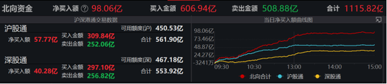 北向资金再度大幅净买入,全天净买入额高达98亿元,11月以来至今,北向资金合计净买入约552亿元,已接近将10月单月净卖出额填平,今年10月份,北向资金合计净卖出573亿元。