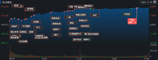 截至11月29日收盘,上证指数涨2.31%,收报3149.75点,深证成指涨2.40%,收报11089.01点,创业板指涨1.78%,收报2339.79点;沪深两市合计成交额9681.2亿元,较前一交易日增长27.65%;北向资金净买入98.06亿元;总体来看,A股中上涨个股为4193只,下跌个股740只。