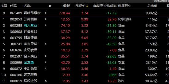 金禾实业、金龙鱼均涨约4%,恒顺醋业、苏盐井神均涨约2%。
