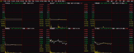 具体行业板块来看,房地产板块上午跌幅居前,盘中跌幅超过2%,中华企业、信达地产、中国武夷等股票盘中跌停。