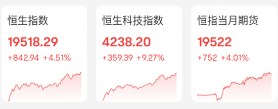 港股再遇大行情,涨逾800点,恒生指数为此轮反弹行情来首次站上19500点。