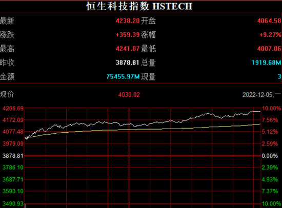 人民币大涨,也带动中国资产纷纷走强,日内沪指大涨1.76%,港股一片欢腾,恒生科技指数收涨逾9%。