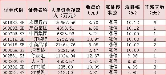 表:商贸零售行业中10只涨停股情况