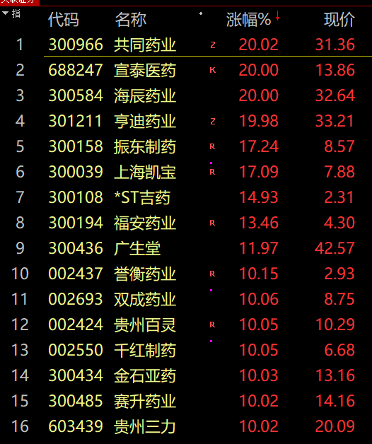 此外,盘面看,以抗病毒为首的医药股再次掀起涨停潮,以岭药业拉升涨停,股价刷新创历史新高,总市值超800亿。共同药业、宣泰医药、海辰药业、千红制药、新华制药、贵州百灵等近20股涨停,上海凯宝、亨迪药业、广生堂、福安药业等11%。