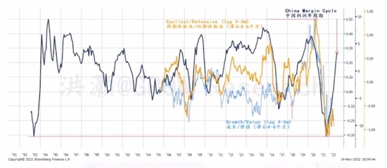 到2022年第四季度,正好中国的利润率周期达到底部开始回暖。