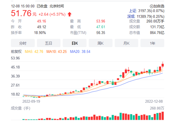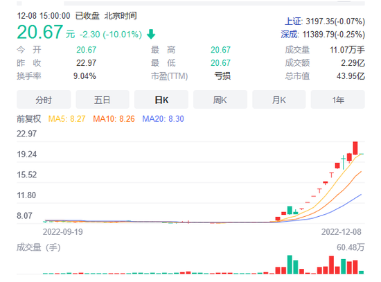 值得注意的是,该股在11月份的22个交易日持续走高,累计大涨约158%,其中有19个交易日涨停。