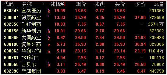 值得注意的是,宣泰医药、新华制药、千红药业均为连续两日涨停。