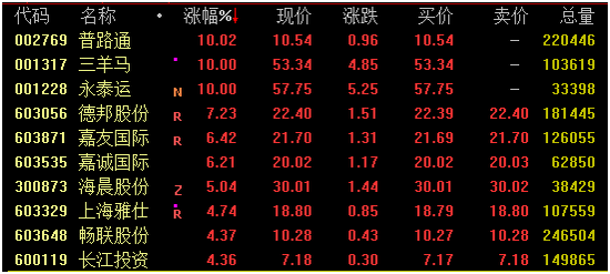 物流板块盘中强势拉升,截至收盘,普路通、三羊马、永泰运等涨停,德邦股份涨超7%。值得注意的是,三羊马已连续三个交易日涨停。