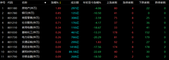 个股板块涨少跌多,沪深两市共计1682只个股收涨,涨停股61只;3186只个股收跌,跌停股16只。当前市场仍呈现板块轮动特征,受政策利好刺激,房地产板块近期持续回暖,今日也是“一马当先”,涨幅近2%。