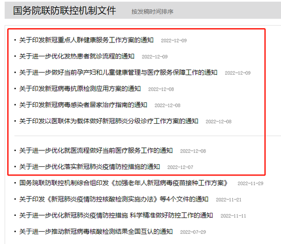 而另一方面,本周最受关注的,无疑是我国在第九版防控方案和优化调整二十条措施之后,再次出台进一步优化防控的十条措施。从周三(12月7日)开始,国务院联防联控机制就在不断出台新的文件。