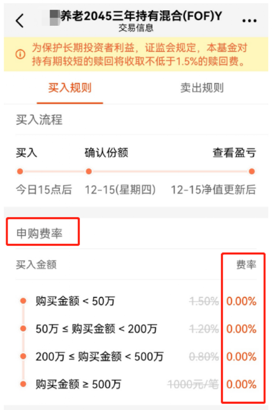 从申购费率看,据记者线上测试,目前蚂蚁基金、腾安基金实施1折申购费率优惠;天天基金、同花顺则将申购费一降到底,0费率可以申购上述产品。