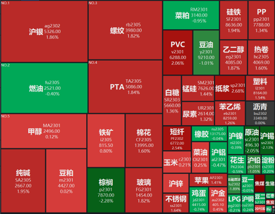 海外原油价格再度明显下跌,WTI原油下跌10.9%,有色、黑色、农产品各品种价格均涨跌互现。对比来看,LME锌涨幅领先(3.9%)、SHFE螺纹钢(3.6%)、DCE铁矿石(3.4%)、CBOT大豆(2.9%)、COMEX白银(1.4%)紧随其后。从下跌幅度来看,DCE焦煤跌幅领先,达到15.1%,其后是ICE布油(-10.1%)、CBOT小麦(-3.6%)、LME铝(-3.4%);COMEX黄金价格则基本持平。