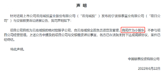 今年6月,银泰投资还因云南城投的一则公告被市场关注。