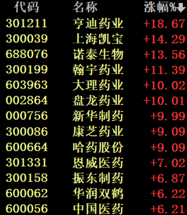 抗原检测、医药商业、医药电商等板块也大幅上涨,英特集团、精华制药等个股涨停。