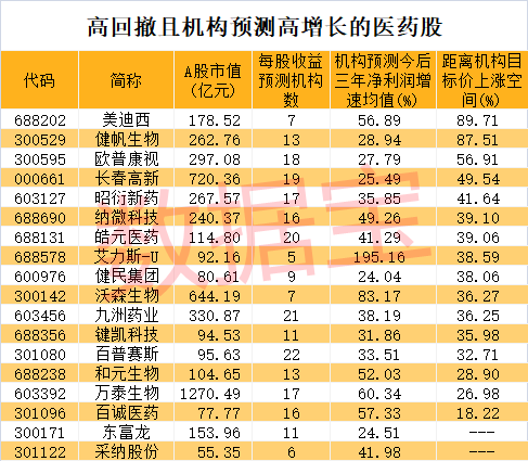哪些医药股未来净利润有望高增长?根据5家以上机构一致预测,数据宝统计,今后三年机构预测净利润增速均超20%的医药股有52只。这52股中,有18股最新收盘价较年内高点出现了30%以上的回撤。