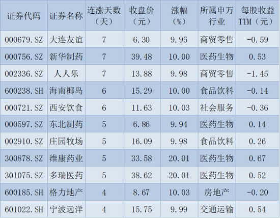 个股方面,今日有65只个股以涨停价报收,增长三成,其中,有11只涨停股,股价已连续上涨超过4个交易日;跌停方面,有15只个股跌停价报收,缩减四成。从申万一级行业看,医药生物行业涨停股数量居首,达13只,紧随其后的是纺织服饰和交通运输,分别达7只和6只。