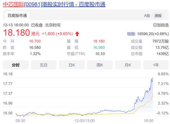 相比之下,收盘早于港股的A股中芯国际股价微跌0.36%,报收41.8元/股。