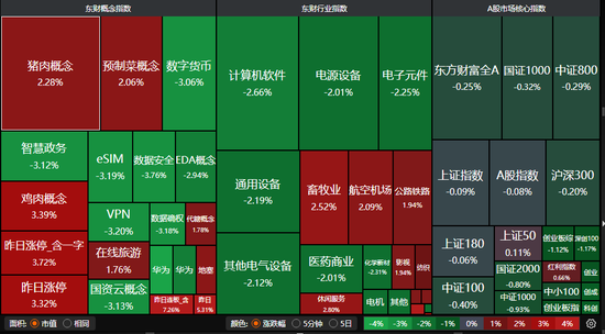计算机、电力设备、国防军工、电子、通信板块走低,跌幅均约为2%。机械设备、汽车、化工紧随其后,医药生物午后跌幅收缩。