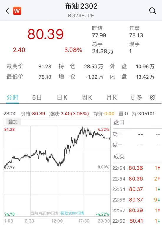 WTI 1月原油期货收涨2.22美元,涨幅3.03%,报75.39美元/桶。布伦特2月原油期货收涨2.69美元,涨幅3.45%,报80.68美元/桶,目前位于80.39美元/桶附近。