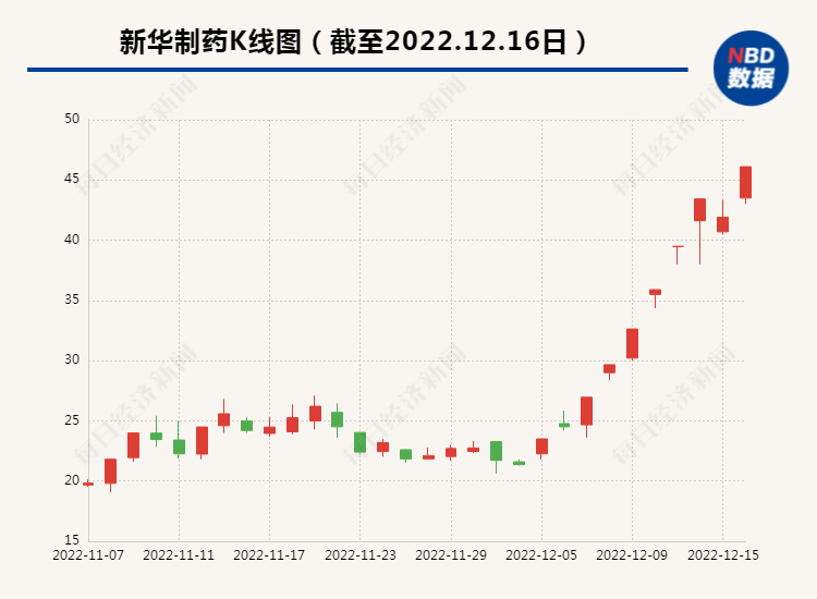 而另一款“退烧神器”布洛芬更是一盒难求。与此相对应的是,12月16日,布洛芬原料药龙头新华制药(000756.SZ)A股再度涨停,录得8天7板。截至收盘,新华制药报46.10元/股,股价再创新高。而在12月7日-14日,新华制药已经连续斩获6个涨停板。