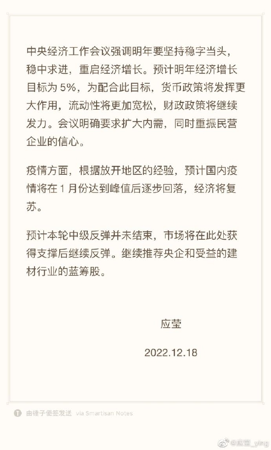 疫情方面,根据放开地区的经验,预计国内疫情将在1月份达到峰值后逐步回落,经济将复苏。