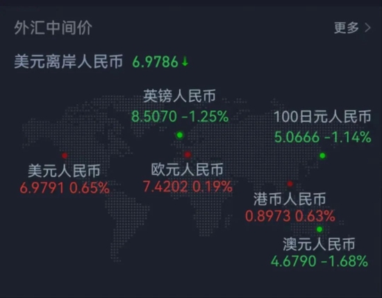 周五在岸人民币兑美元16:30收盘报6.9716,较上一交易日下跌26个基点,本周累计下跌236个基点,夜盘23:30收报6.9750。人民币兑美元中间价报6.9791,调贬448个基点,调贬幅度为5月27日以来最大,本周累计调贬203个基点。