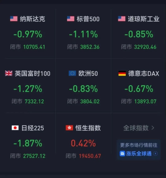 周五,美国三大股指全线收跌,道指跌0.85%报32920.46点,标普500指数跌1.11%报3852.36点,纳指跌0.97%报10705.41点。本周,道指跌1.66%,标普500指数跌2.08%,纳指跌2.72%。